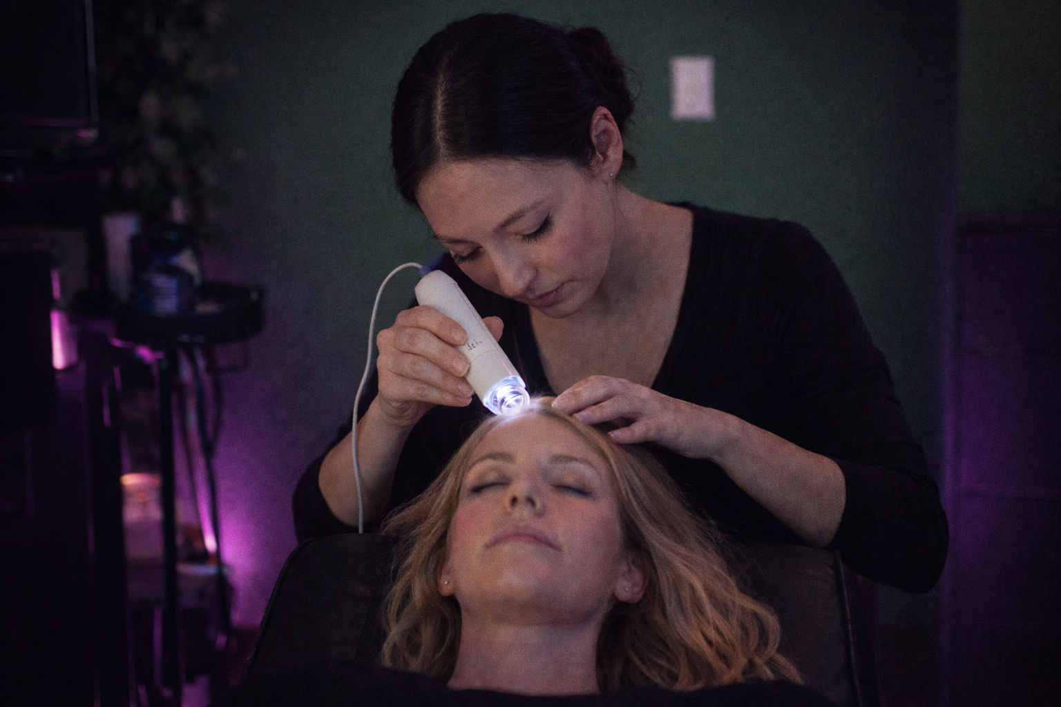 Our scalp therapy is designed for all hair types and anyone looking to restore balance, both inside and out. It’s perfect for clients dealing with dandruff, dryness, itchiness, or buildup from products. It’s also ideal for those experiencing stress, tension, or thinning hair — or anyone simply seeking deep relaxation and high-end self-care.